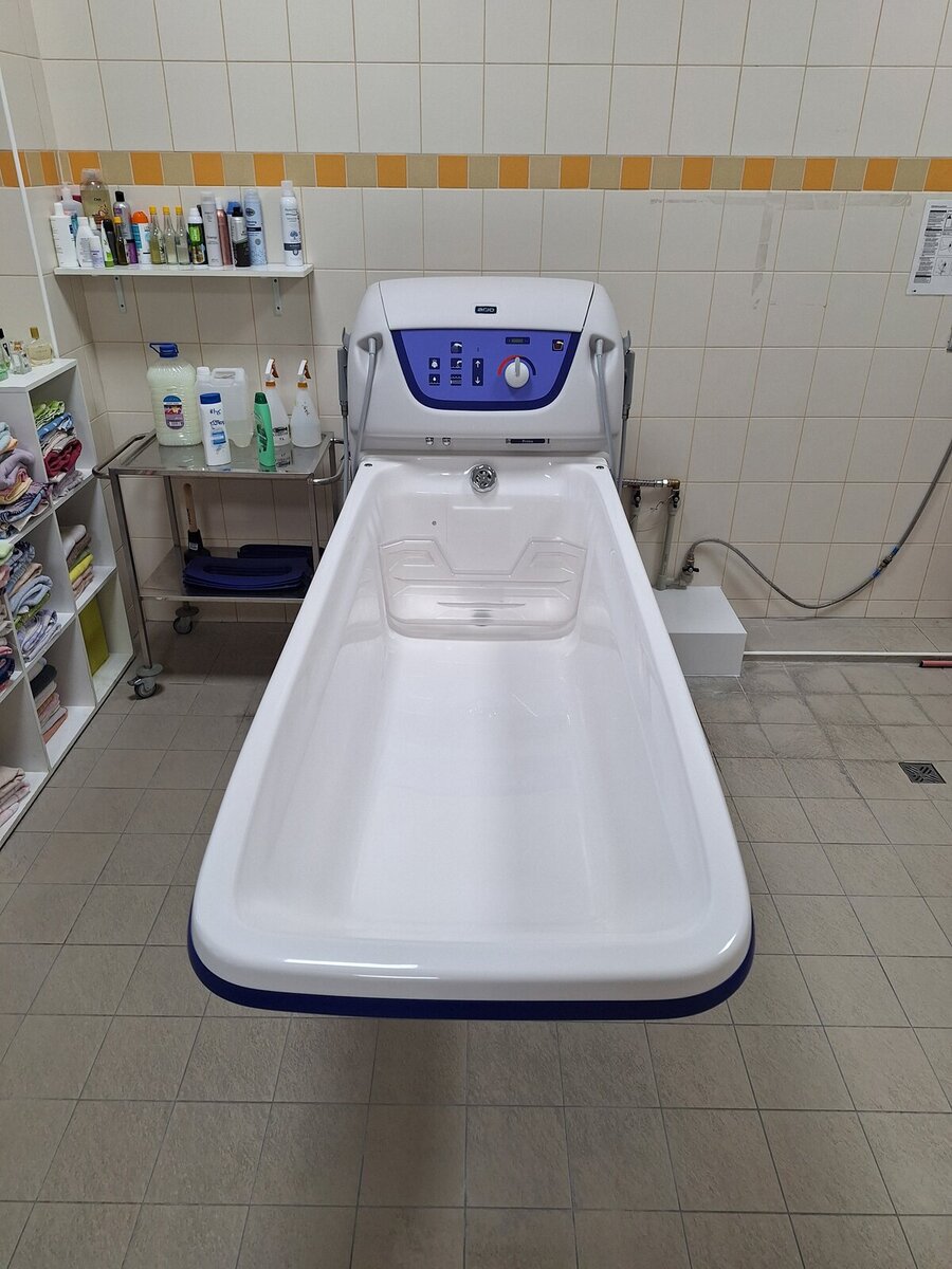 Nové technologie přinášejí také významnou úlevu našemu personálu. Elektricky ovládaná vana a zvedací systém snižují fyzickou námahu při manipulaci s klienty a přispívají k ochraně zdraví zaměstnanců. Automatické vyplachování a dezinfekce nádob šetří čas pracovníků a zároveň zajišťuje vysoký hygienický standard bez nutnosti manuálního čištění. Díky tomu se mohou pracovníci více věnovat přímé péči o klienty.